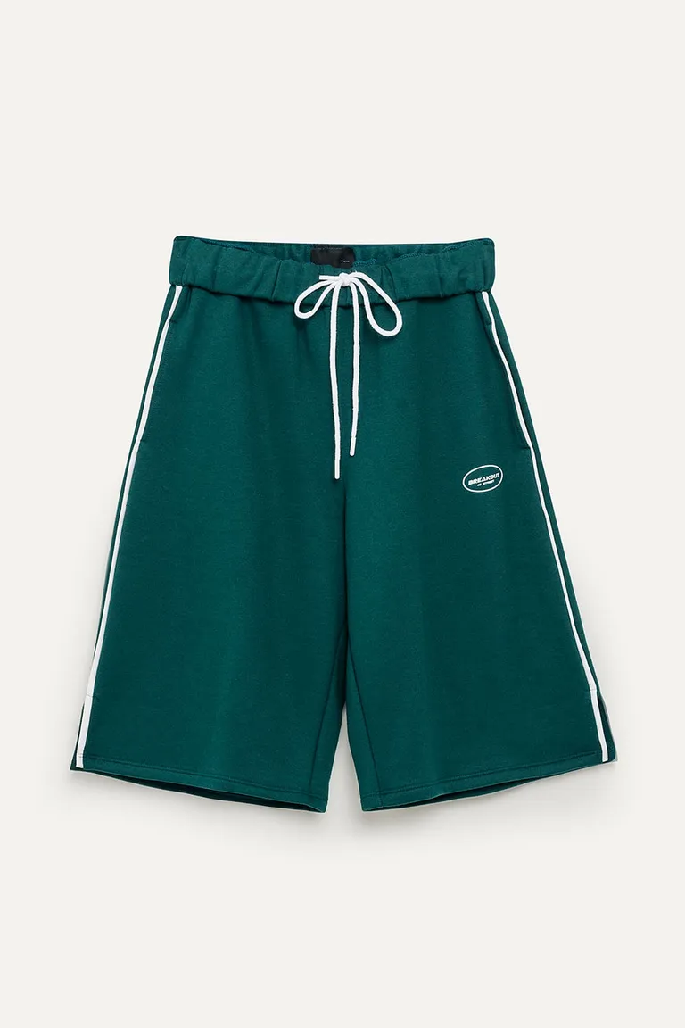 Bermuda con cintura elástica y cordones, bolsillos laterales y detalles a contraste. Un diseño cómodo y casual que se adapta a diferentes estilos y ocasiones. Ideal para lucir un look relajado y moderno.