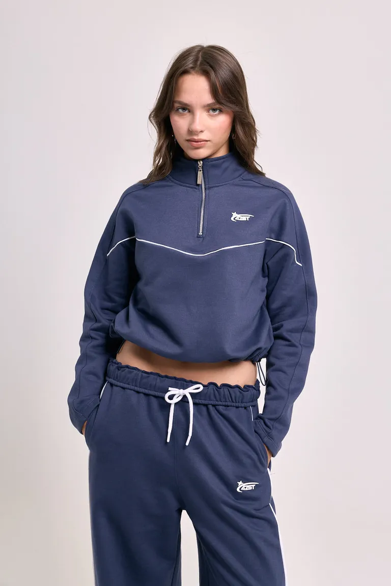 Buzo de cuello alto con medio cierre metálico, diseño con recortes definidos y vivos en contraste. Presenta una silueta ajustada y detalles modernos ideales para combinar en looks urbanos y funcionales. Una prenda versátil para el uso cotidiano con estilo distintivo.