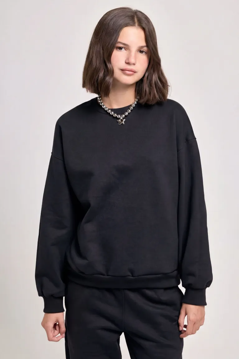 Buzo de corte clásico con cuello redondo, puños y cintura elastizados. Presenta una silueta cómoda y versátil, ideal para integrar en conjuntos casuales de uso cotidiano. Esta prenda de diseño minimalista se adapta fácilmente a diversas propuestas de estilo, brindando abrigo y funcionalidad en cualquier época del año.