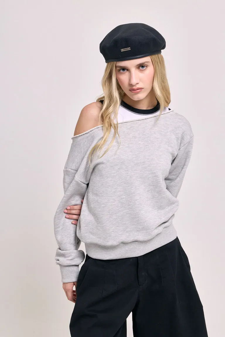 Buzo de corte holgado con diseño de escote asimétrico y acabado rústico. Una prenda versátil y cómoda ideal para completar conjuntos urbanos y modernos con un estilo relajado para el día a día. Posee detalle de bordado de marca y terminaciones en puños y cintura.