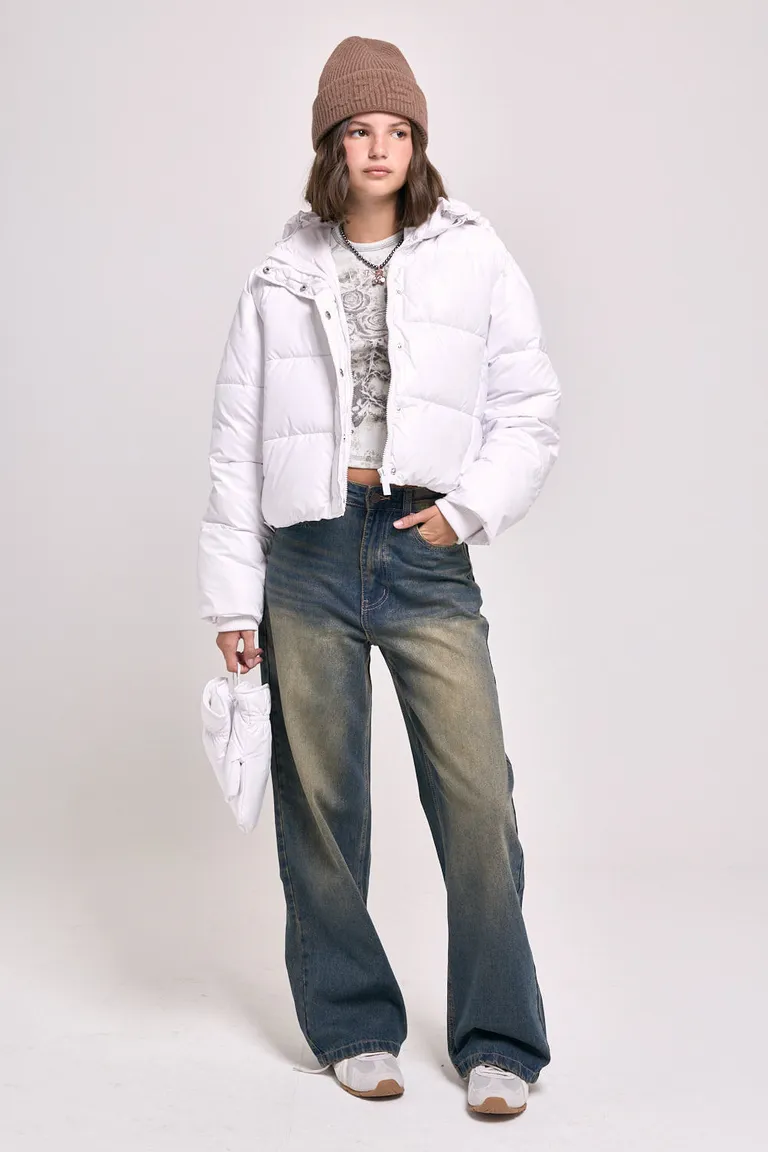 Campera corta acolchada con diseño funcional, cierre frontal y ajuste cómodo. Versátil para combinar con diversos estilos urbanos. Una pieza esencial de silueta definida que se adapta a múltiples conjuntos cotidianos aportando abrigo y estilo sin esfuerzo.