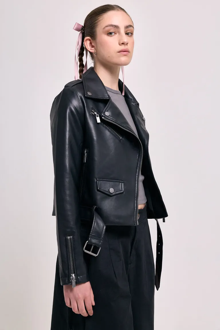 Chaqueta de efecto piel con cierre lateral y detalles metálicos para mujer de 47 Street