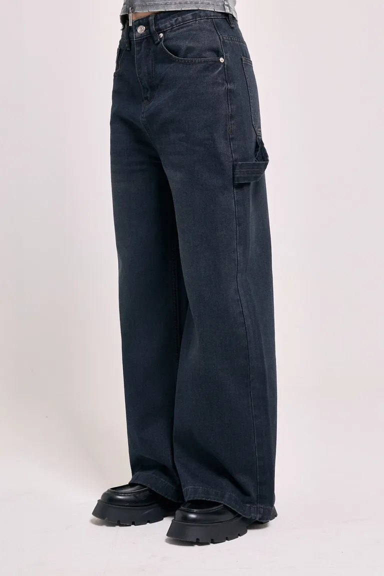 Pantalón de jean con diseño carpintero, tiro medio y silueta recta. Cuenta con cinco bolsillos tradicionales, cierre frontal y pasacintos, ofreciendo una opción versátil y funcional para el uso cotidiano. Su corte recto aporta comodidad y un estilo relajado, ideal para integrar en diversos conjuntos urbanos de temporada.
