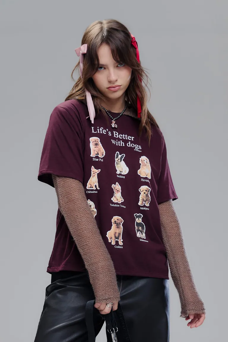 Remerón de calce holgado y diseño casual, presenta un cuello redondo clásico y un estampado frontal alusivo a diferentes razas de perros. Su corte amplio y cómodo lo convierte en una prenda versátil para combinar en cualquier ocasión del día, brindando un estilo relajado y moderno.