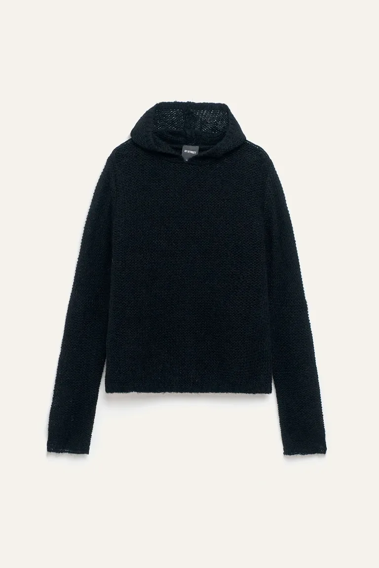 Sweater tejido con capucha, de diseño versátil y corte clásico. Ideal para usar en capas en días frescos, brinda comodidad y un estilo relajado para diversas ocasiones. Presenta un acabado sutil y calce holgado que se adapta con facilidad a distintos looks casuales.