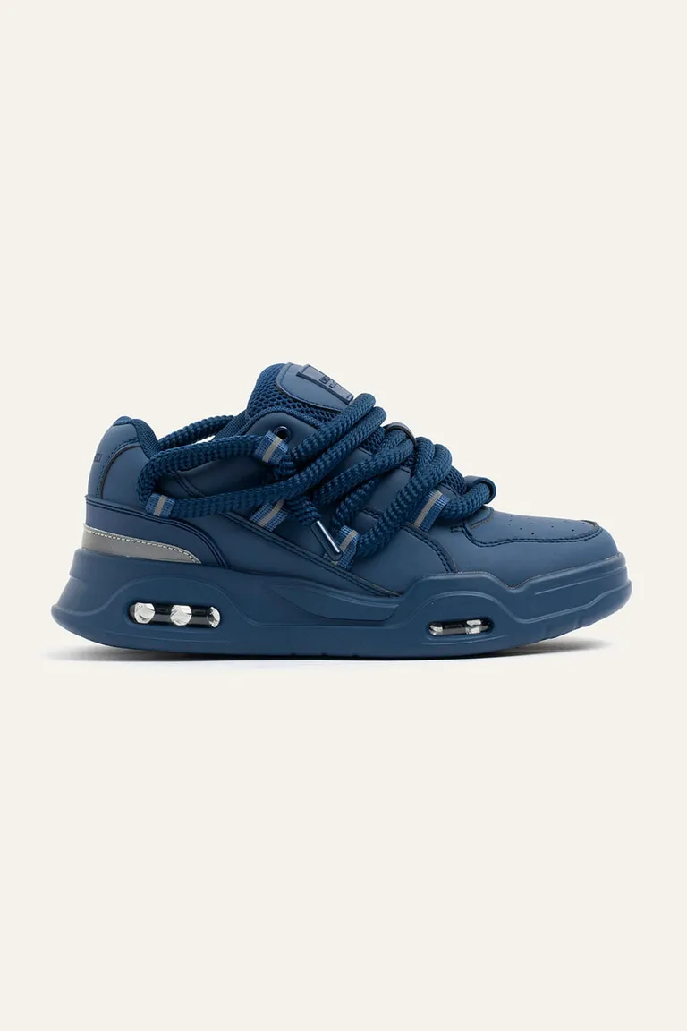 Zapatillas urbanas de diseño contemporáneo, caracterizadas por su silueta robusta con cordones gruesos y redondeados. Cuentan con una base con cámara de aire visible que brinda soporte al caminar, ideales para un estilo moderno y casual. Su estructura incluye detalles de recortes y una lengüeta acolchada que prioriza la comodidad para el uso diario en diversas situaciones cotidianas.