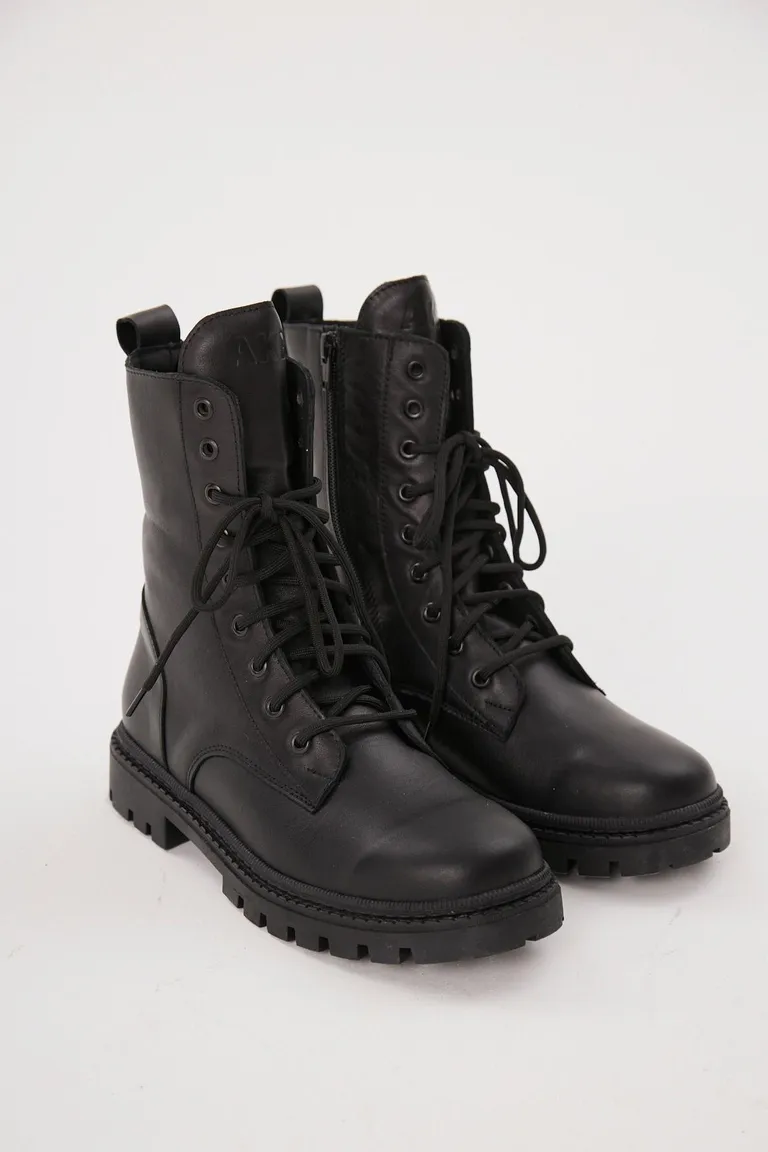 Botas tipo borcego con cordones y cierre lateral, ideales para completar tus looks diarios con un estilo urbano y funcional. Su diseño de caña media brinda comodidad y versatilidad para diversas ocasiones, adaptándose fácilmente a diferentes outfits.