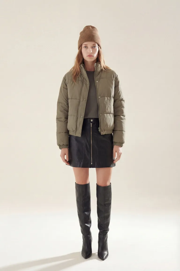 Campera acolchada de corte clásico con cierre frontal, cuello alto y puños ajustados. Una prenda versátil ideal para completar looks urbanos de media estación, ofreciendo abrigo y comodidad sin perder el estilo en los días frescos.