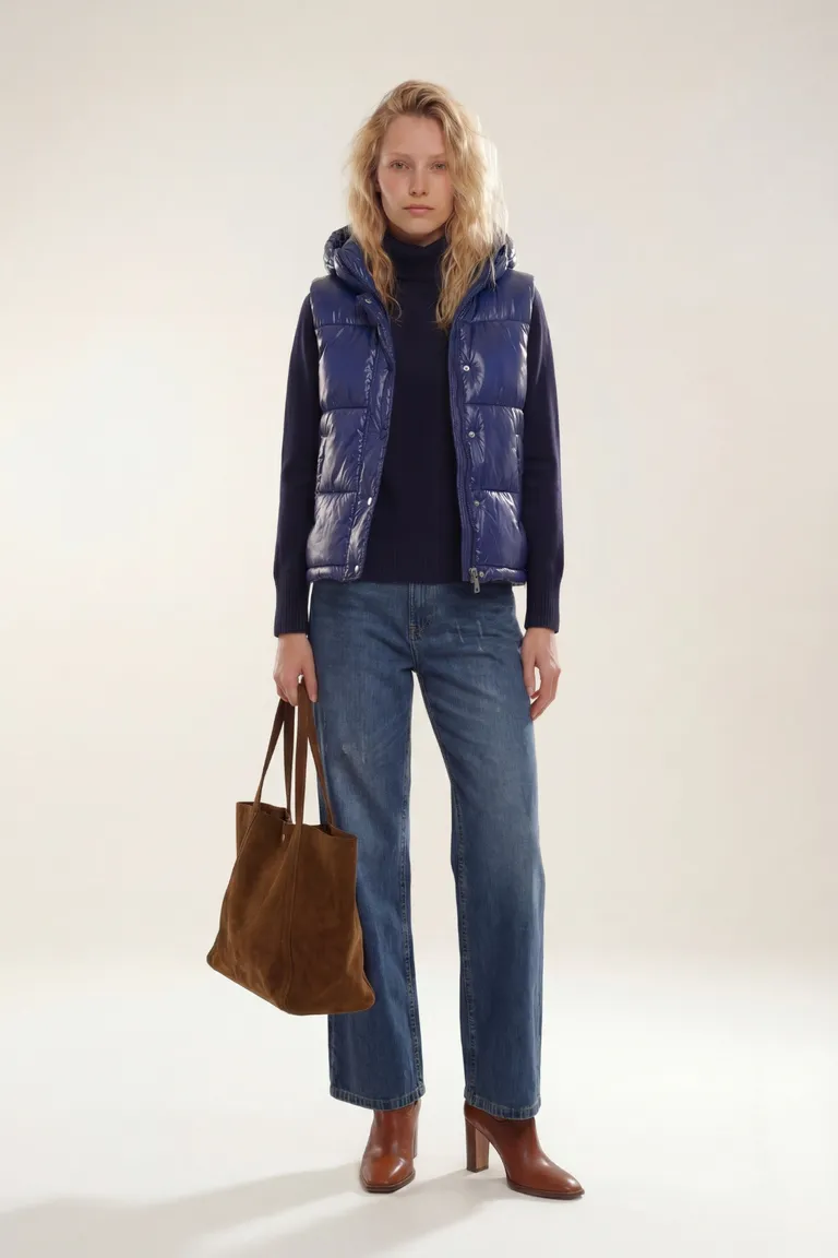 Chaleco acolchado con capucha, ideal para completar looks casuales y urbanos. Presenta un diseño versátil y funcional, con ajuste cómodo y cierre frontal, perfecto para sumar capas en los días frescos. Su estética atemporal lo convierte en una prenda esencial para combinar con diversos estilos en el día a día.