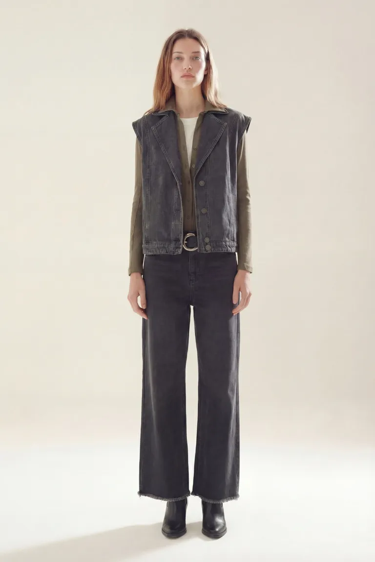 Chaleco sin mangas con solapas clásicas, cierre frontal con botones y diseño estructurado. Ideal para complementar outfits diarios con un toque urbano y versátil. Su diseño aporta una capa adicional de estilo a cualquier conjunto casual.