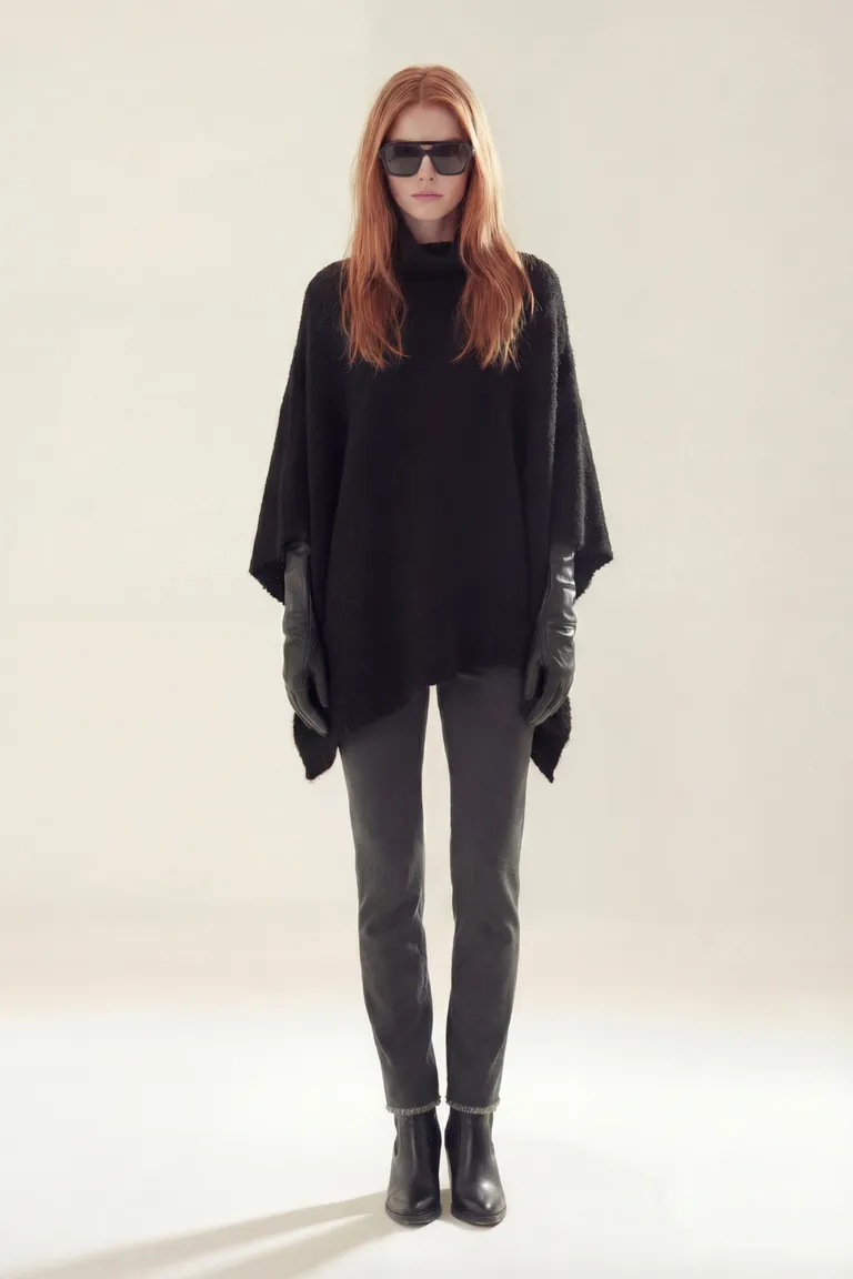 Poncho con cuello alto diseñado con un corte holgado y fluido, ideal para lograr superposiciones elegantes en días frescos. Esta prenda versátil se adapta fácilmente a diferentes conjuntos, proporcionando comodidad y una caída natural. Su estructura permite un uso sencillo sobre otras prendas, siendo una opción clásica para complementar looks urbanos.
