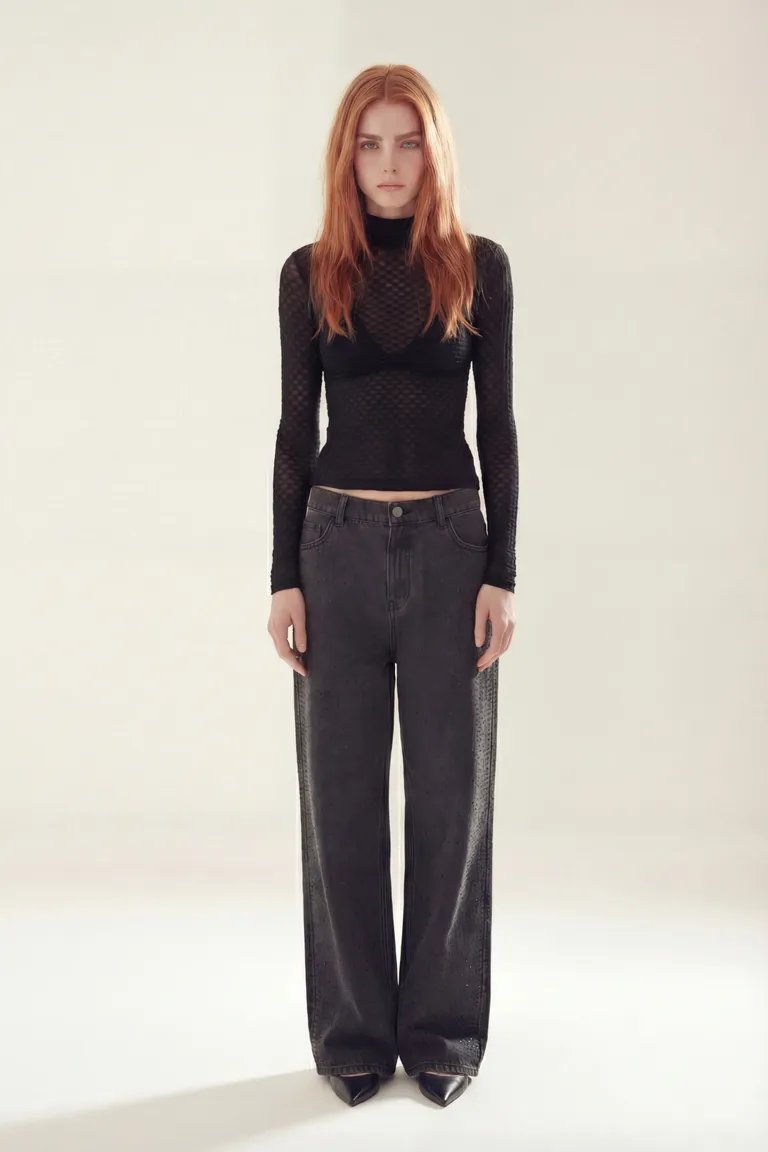 Remera de manga larga con cuello alto y textura trabajada. Una prenda versátil ideal para combinar en outfits urbanos y modernos. Presenta un corte entallado que se adapta cómodamente al cuerpo, brindando un estilo actual y sofisticado para diversas ocasiones diarias.