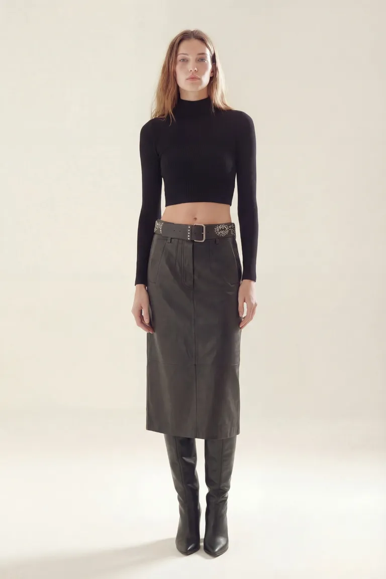 Remera de manga larga con cuello alto y calce ajustado. Una prenda básica y versátil ideal para combinar en diferentes outfits diarios con un estilo sobrio y definido.