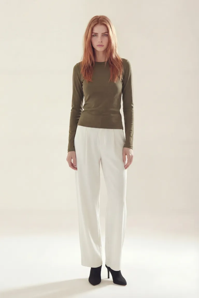 Remera de mujer con mangas largas y cuello redondo. Una prenda versátil, cómoda y de calce clásico ideal para complementar diferentes outfits diarios, brindando un estilo atemporal y funcional para diversas ocasiones.
