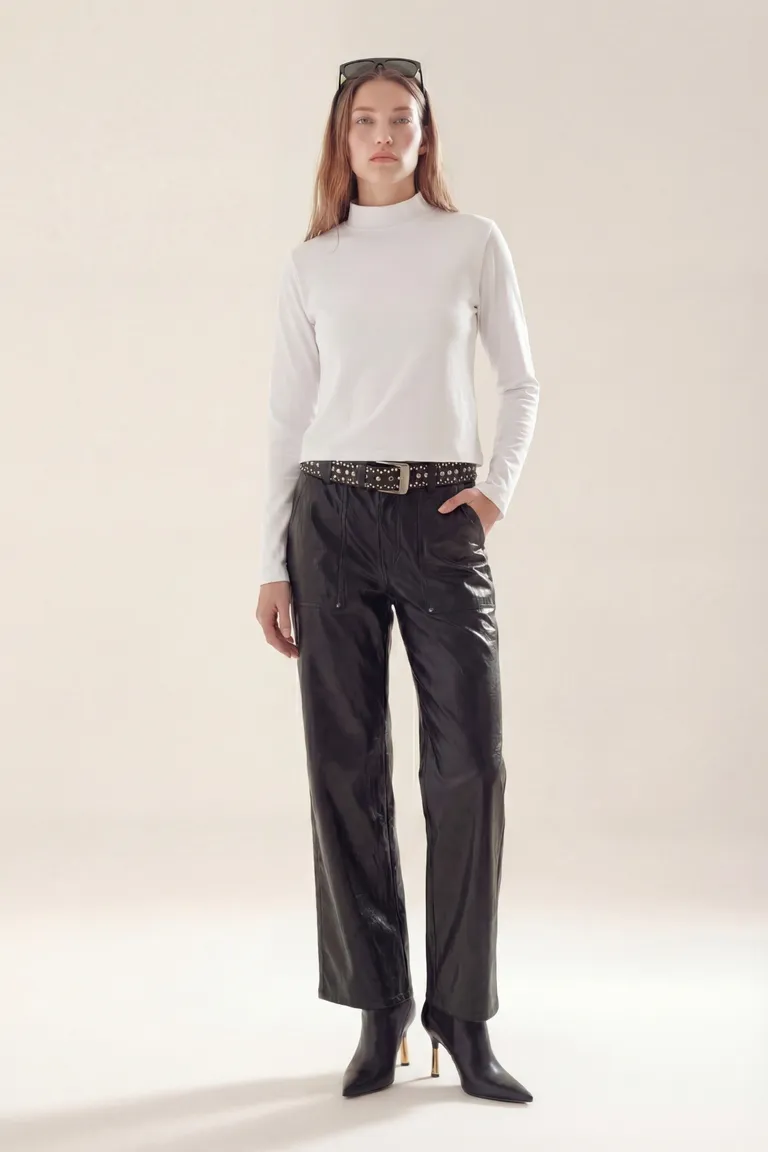 Remera de cuello alto y mangas largas, ideal para combinar en looks casuales o formales. Su diseño básico y entallado ofrece comodidad y versatilidad para el uso diario en diversas ocasiones, manteniendo un estilo clásico y minimalista en el guardarropa.