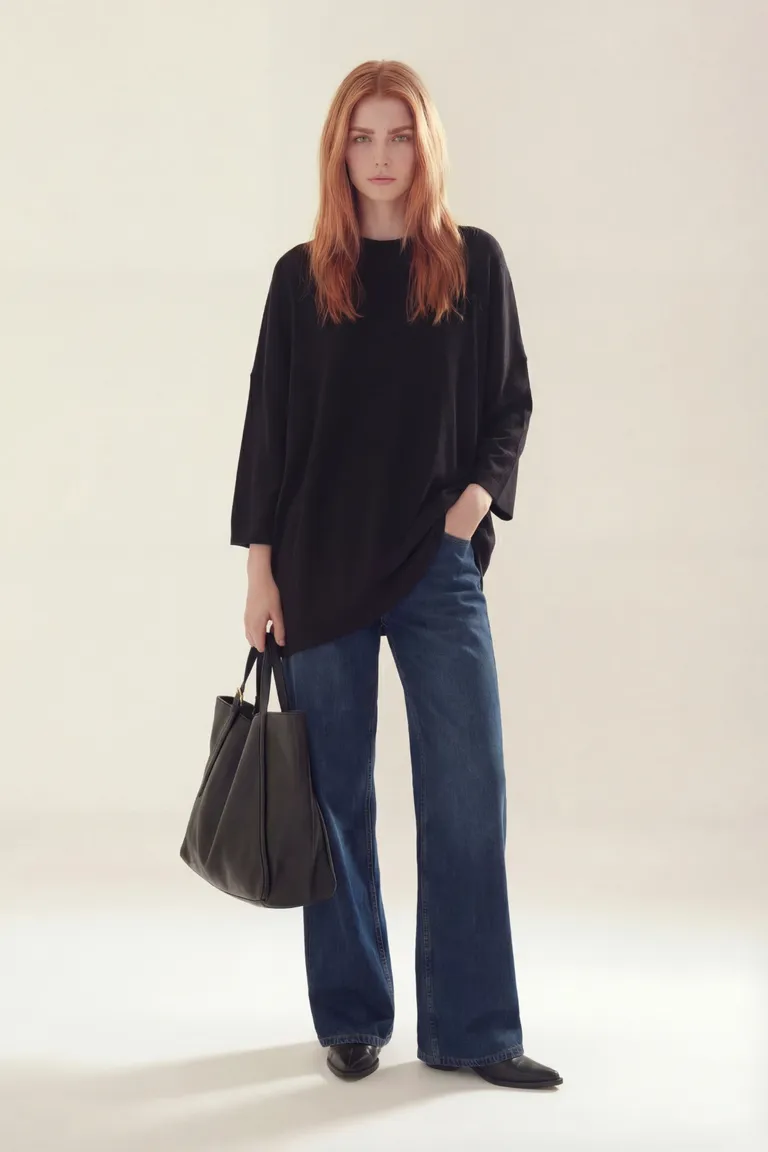 Sweater de corte holgado con cuello redondo y mangas tres cuartos, ideal para un look casual y cómodo. Su diseño versátil permite combinarlo fácilmente con diversas prendas, brindando una caída relajada y un estilo atemporal para el día a día.