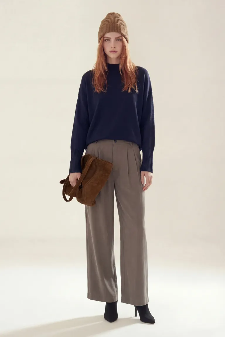 Sweater de tejido con cuello redondo y mangas largas. Presenta un corte clásico con terminaciones acanaladas en puños y ruedo, ideal para combinar en outfits de media estación o invierno con pantalones de vestir o jeans.