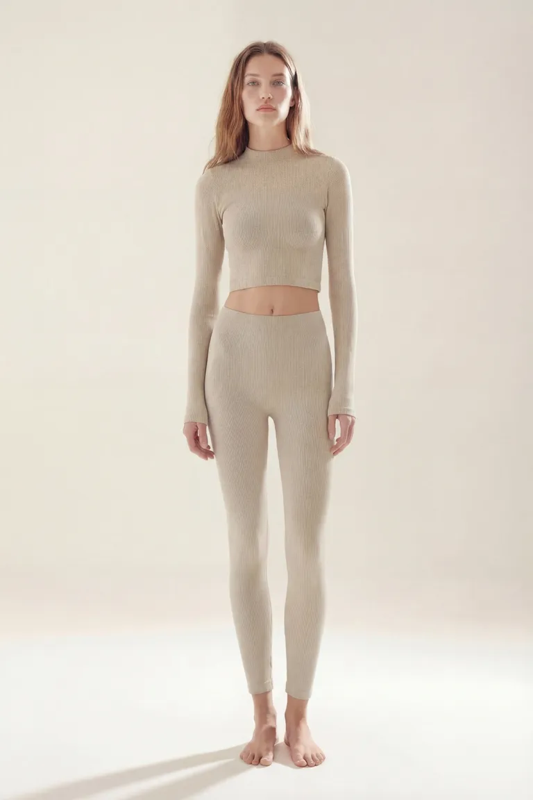 Top de cuello alto y mangas largas, diseñado con una textura acanalada que ofrece un calce ajustado al cuerpo. Ideal para combinar en looks casuales o urbanos. Su diseño minimalista y elegante lo convierte en una prenda básica esencial para cualquier guardarropa, brindando versatilidad y confort en el uso diario.