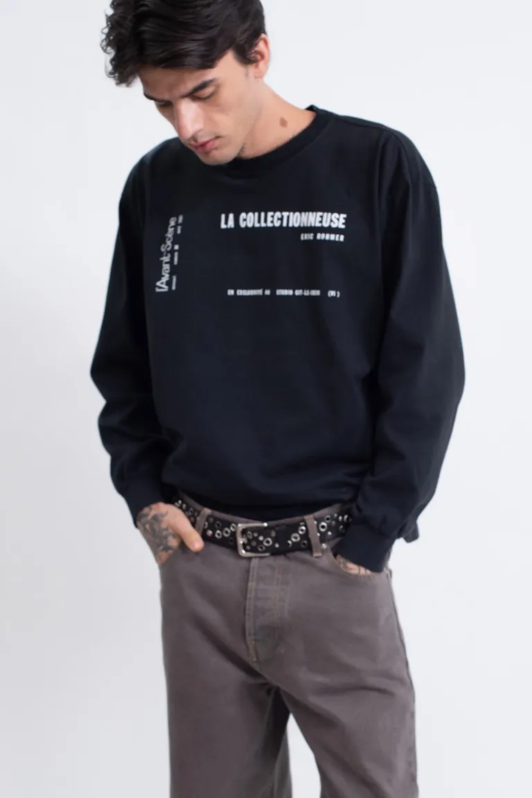Remera de manga larga con cuello redondo y diseño de calce oversize. Presenta una estampa frontal distintiva y detalles en la parte posterior, ofreciendo un estilo casual y urbano para el uso diario. Ideal para combinar con diversas prendas y lograr un look versátil.