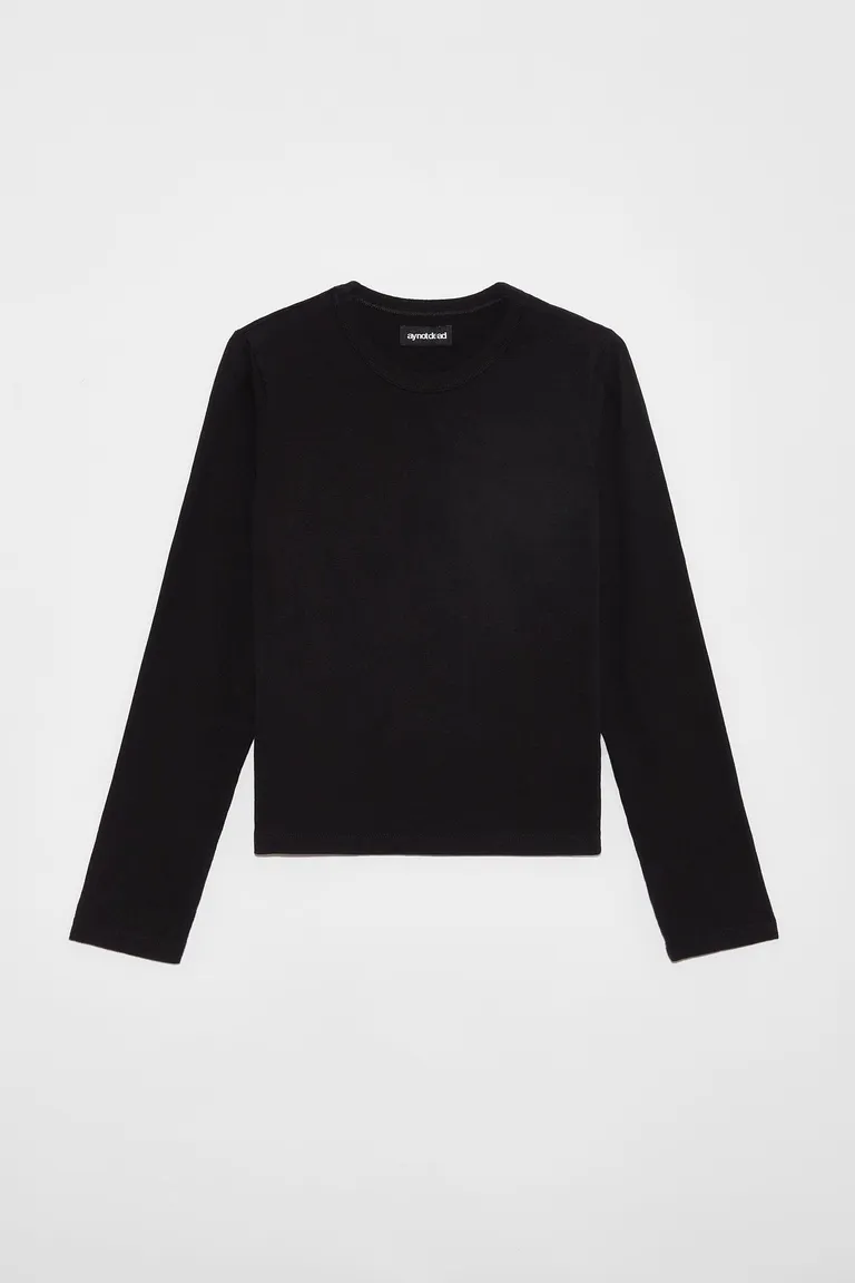 Remera de manga larga con cuello redondo, diseñada con un calce regular que llega hasta la altura de la cadera. Una prenda versátil y esencial para completar cualquier conjunto casual, manteniendo un estilo clásico y minimalista en el guardarropa.