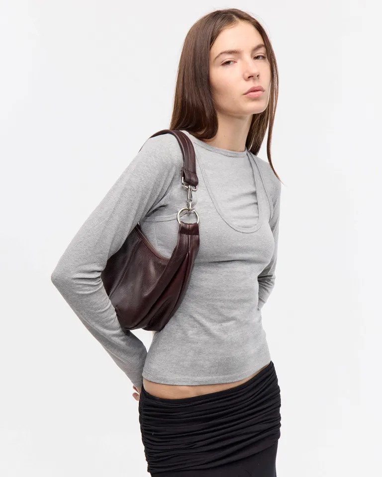 Top de manga larga con diseño de musculosa superpuesta integrado. Presenta un escote redondo clásico y un corte al cuerpo que se adapta a la silueta. Incluye detalle de marca en la espalda, ideal para combinar en looks urbanos y modernos.