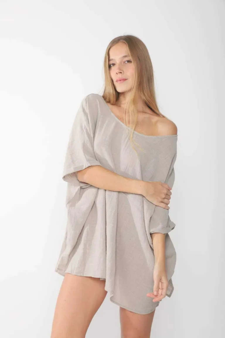 Remera amplia y holgada de bambulá con escote en espalda y aberturas laterales de Belle