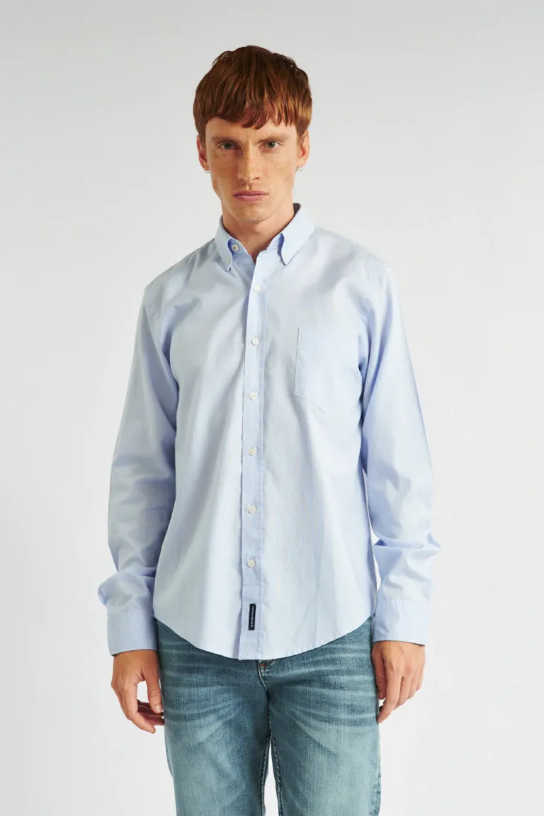 Camisa de corte regular y manga larga para hombre, diseñada con cuello tipo button down. Cuenta con un bolsillo frontal aplicado y un diseño clásico versátil para combinar en looks casuales o formales. Esta prenda destaca por su estilo atemporal y comodidad en el uso diario. Ideal para completar outfits urbanos con un toque elegante.