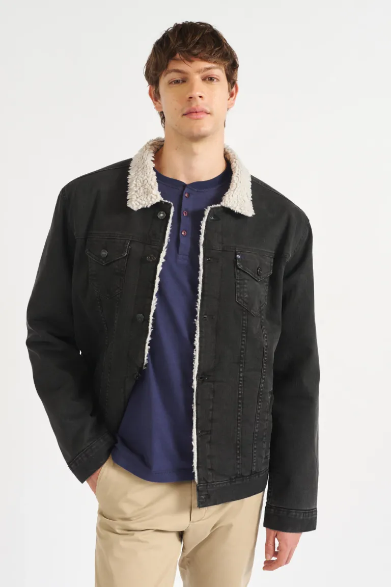 Campera de jean con interior de corderito abotonada y bolsillos frontales para hombre de Bensimon