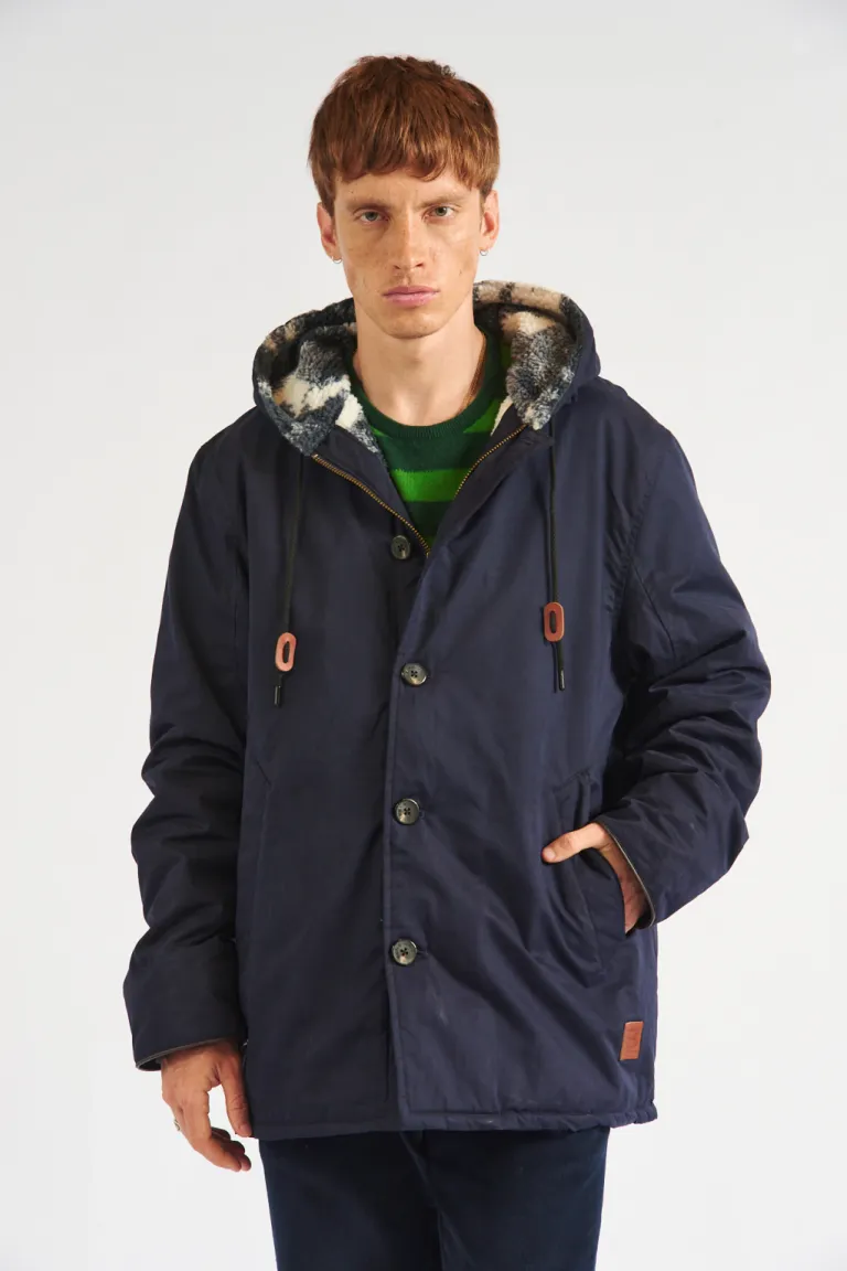 Campera tipo parka con diseño de calce holgado y capucha integrada. Presenta cierre frontal oculto con botones, bolsillos laterales prácticos y puños internos reforzados para mayor abrigo. Una opción versátil y funcional para completar conjuntos urbanos en los días de bajas temperaturas.