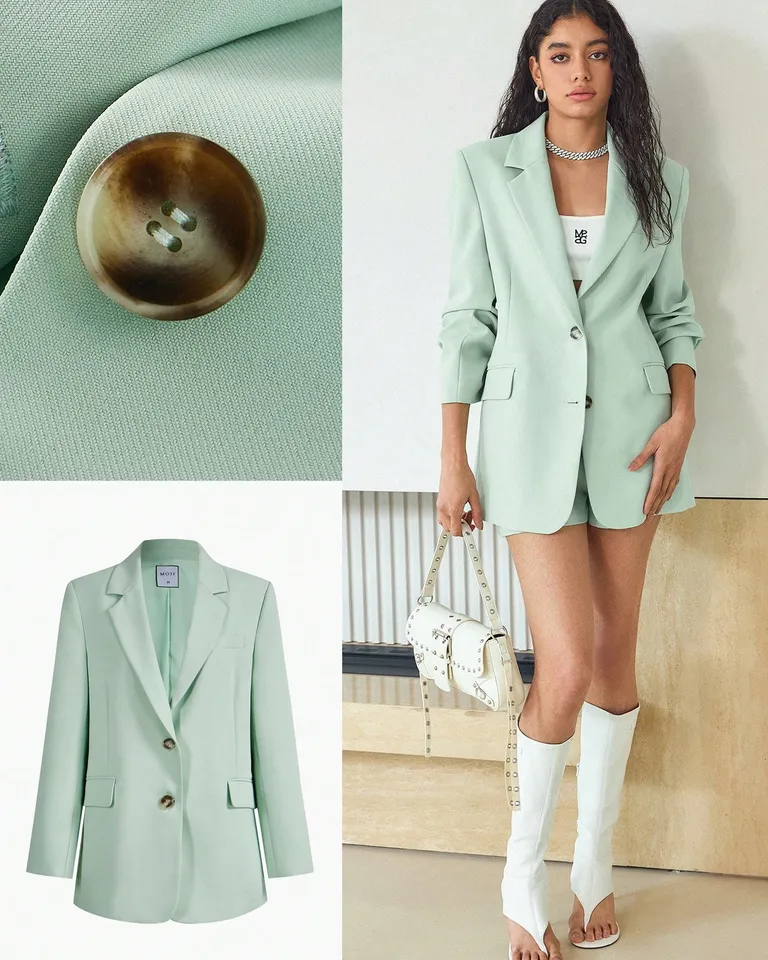 Destaca tu estilo y elegancia con este impresionante blazer estructurado de una sola hilera. Diseñado para realzar tu figura, esta prenda versátil se adapta perfectamente a cualquier ocasión, desde eventos formales hasta atuendos casuales. Suave y cómoda, te sentirás confiada y a la moda en todo momento.