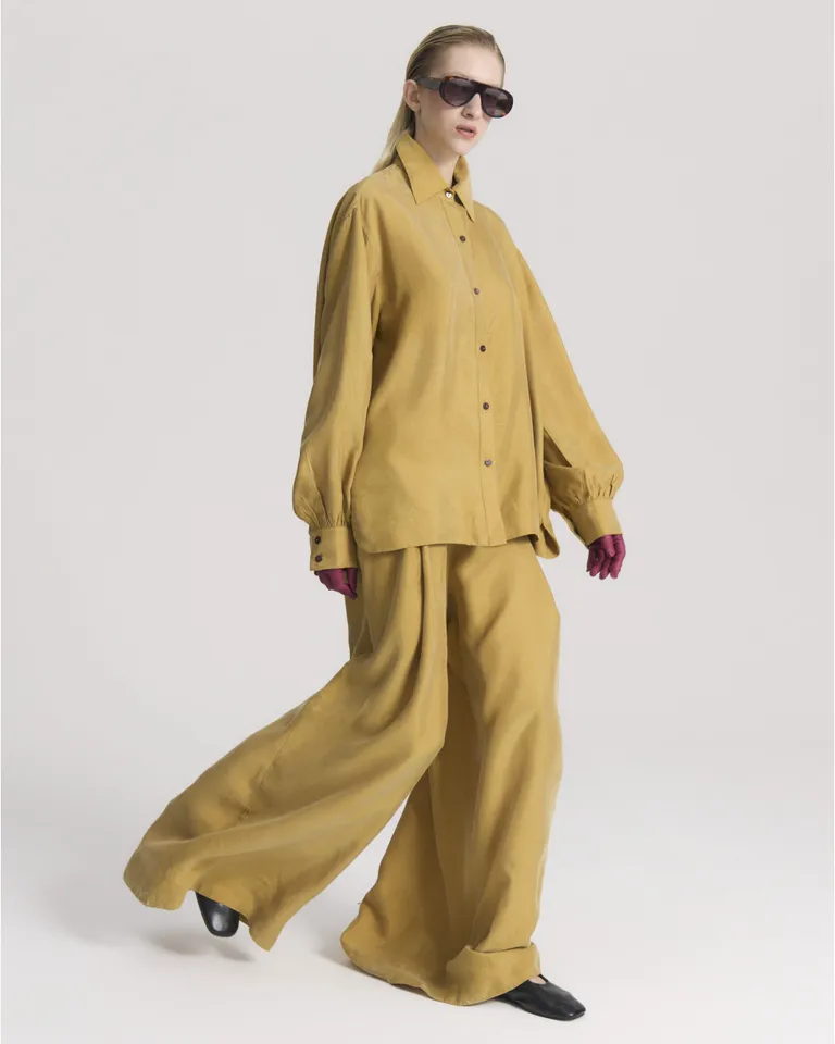 Pantalón de mujer con corte de pierna amplia y gran caída. Diseño con tablas en el frente que brindan movimiento, cintura plana en la parte delantera y elástico en la espalda para un calce cómodo. Con cierre invisible lateral, este pantalón es una prenda versátil para el uso cotidiano, ofreciendo comodidad y un estilo fluido para todo tipo de ocasiones en cualquier temporada.