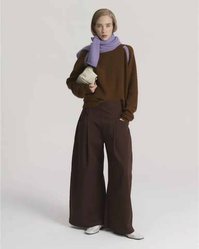 Pantalón de mujer estilo sastrero con pierna ancha y tiro alto con pinzas frontales de Blue Sheep en Pantalones para argentina
