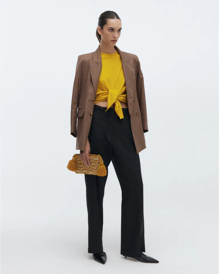 Remera de manga corta con escote redondo y detalle de nudo frontal. Esta prenda presenta una terminación con puño de ribb y un diseño versátil para incorporar en conjuntos diarios con un toque moderno y urbano.