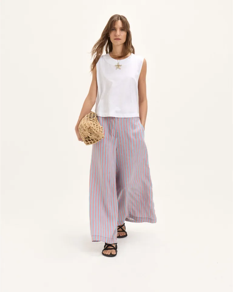 Remera negra de algodón pima con cuello redondo amplio y terminación en ribb ancho. Diseño moderno y versátil, ideal para combinar con prendas favoritas y lograr un look fresco y casual.