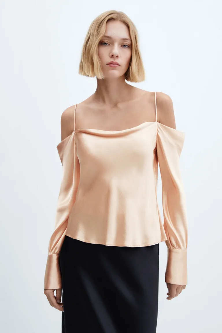 Luce elegante y femenina con esta blusa satinada de cuello drapeado. Diseño recto y fluido, perfecto para eventos especiales o una noche de fiesta. Combina con faldas, pantalones o jeans para crear looks sofisticados y a la moda. Disponible en talla xs, es una prenda versátil y de alta calidad que te hará sentir cómoda y segura de ti misma.