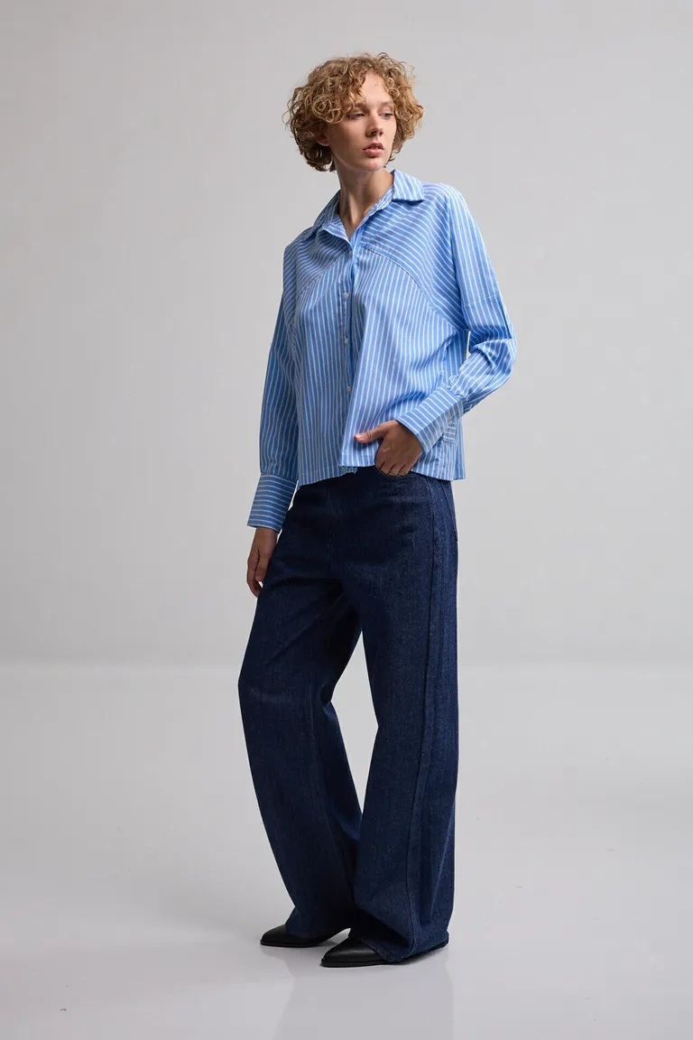 Esta camisa de corte ajustado y diseño rayado es la prenda ideal para elevar cualquier look casual. Su versátil diseño la hace perfecta para múltiples ocasiones, desde el fin de semana hasta la oficina. Confeccionada en un cómodo tejido plano, ofrece una silueta elegante y estilizada.