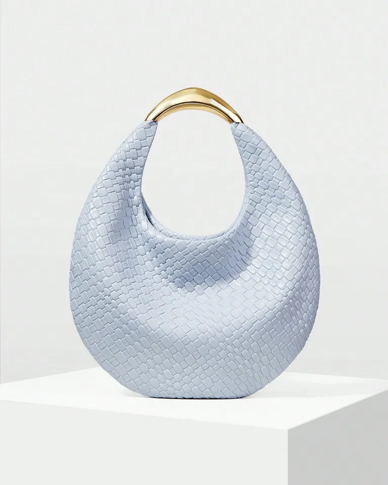 Elegante bolso de mano en forma de media luna, perfecto para complementar tus looks de día o noche. Su textura lisa y moderna le da un toque sofisticado. Ideal para llevar tus esenciales con estilo durante San Valentín o cualquier ocasión especial.