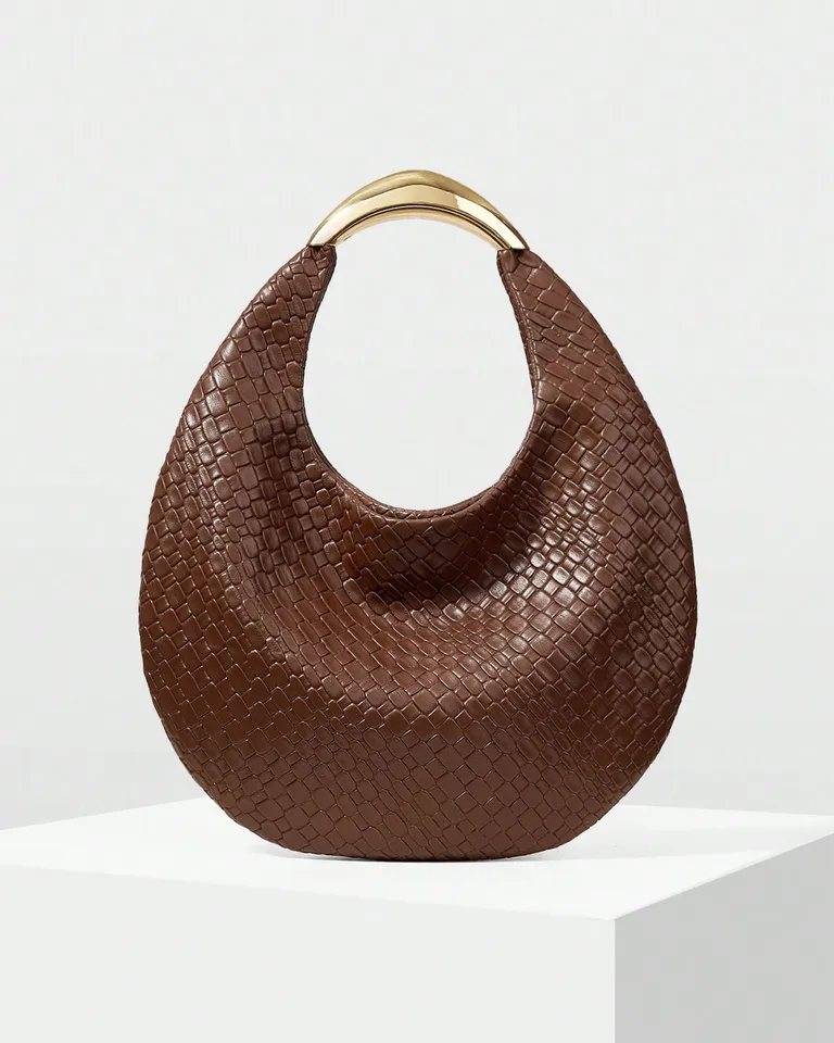 Elegante bolso de mano en forma de media luna, perfecto para complementar tus looks de día o noche. Su textura lisa y moderna le da un toque sofisticado. Ideal para llevar tus esenciales con estilo durante San Valentín o cualquier ocasión especial.