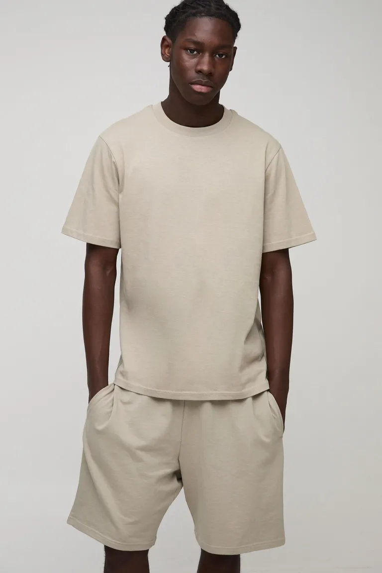Conjunto de remera y bermuda básico para hombre, perfecto para el día a día. Confeccionado con telas de alta calidad y terminaciones cuidadas. Ideal para combinar con diferentes estilos y ocasiones. Encuentra tu talla ideal y luce un look moderno y relajado.