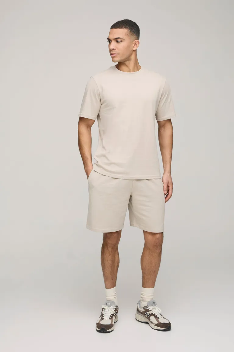 Conjunto de remera y bermuda básico para hombre, perfecto para el día a día. Confeccionado con telas de alta calidad y terminaciones cuidadas. Ideal para combinar con diferentes estilos y ocasiones. Encuentra tu talla ideal y luce un look moderno y relajado.