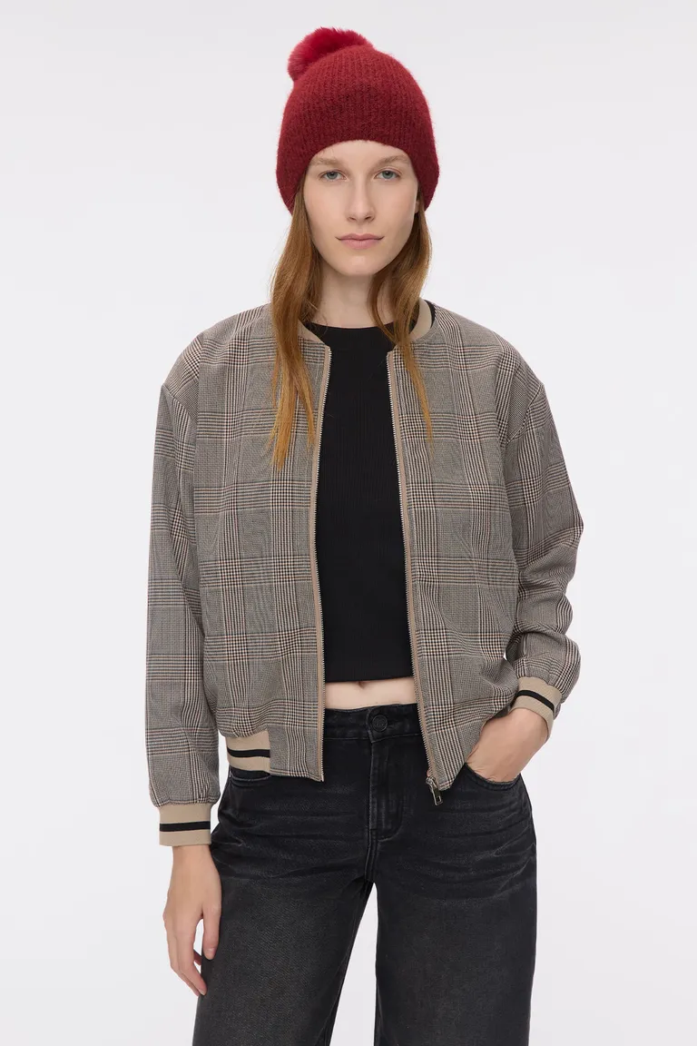 Campera de estilo sastrero con diseño estampado de corte bombé, cuello redondo y terminaciones en ribb. Cuenta con cierre frontal metálico y bolsillos de vivo en el frente. Una prenda forrada de calce cómodo, ideal para sumar una capa versátil y urbana a cualquier look diario.