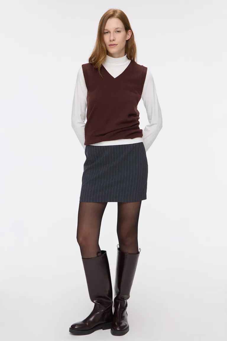 Falda mini sastrera de corte recto con diseño a rayas verticales y cierre lateral de Cuesta Blanca