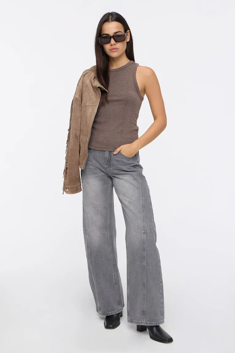 Musculosa de ajuste entallado con cuello redondo y diseño de costuras decorativas en el panel frontal. Una prenda versátil y moderna, ideal para combinar en looks casuales de uso diario. Su corte clásico se adapta cómodamente a la silueta, ofreciendo una opción funcional para diversas ocasiones de estilo urbano.