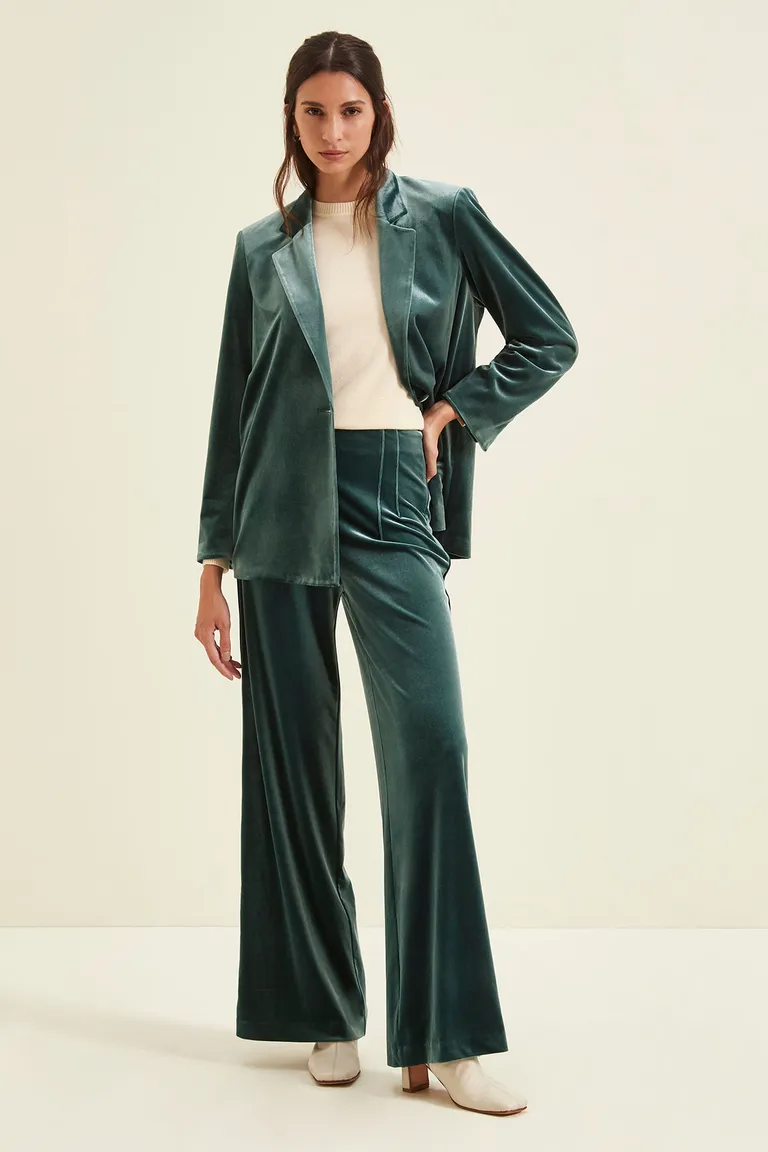 Pantalón de corte recto y amplio, diseñado con cierre lateral invisible y detalles de alforzas en la cintura tanto en el frente como en el dorso. Presenta un lateral con vivo al tono, aportando una terminación elegante y distinguida. Ideal para integrar en conjuntos formales o elevar un look de uso diario con un calce cómodo y moderno.