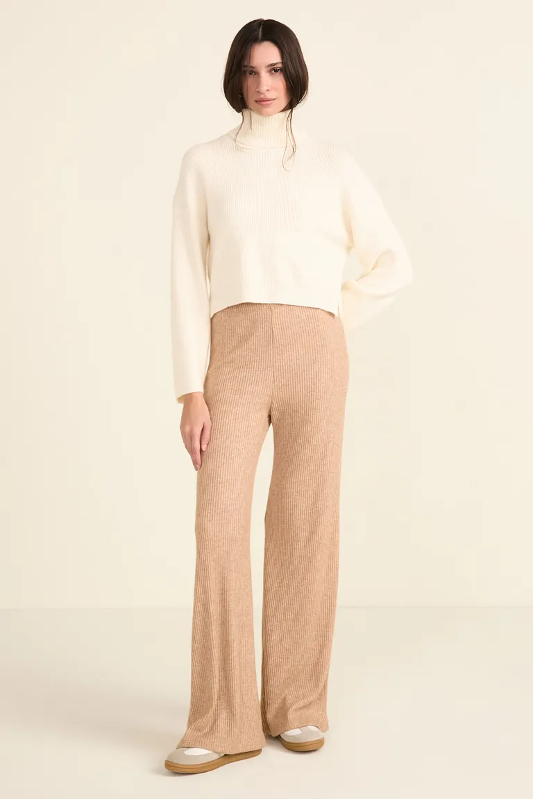 Pantalón de tiro alto con corte estilo palazzo, confeccionado con cintura elastizada para un ajuste cómodo. Su diseño versátil permite integrarlo en diversos equipos casuales o formales. Una prenda esencial para renovar el guardarropa cotidiano con un calce holgado y relajado.