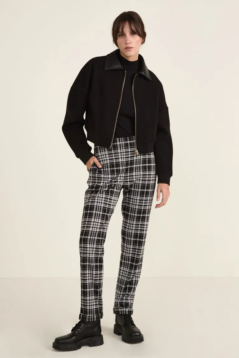 Pantalón de tiro alto con diseño de cuadros y bolsillos laterales de corte entallado de Cuesta Blanca