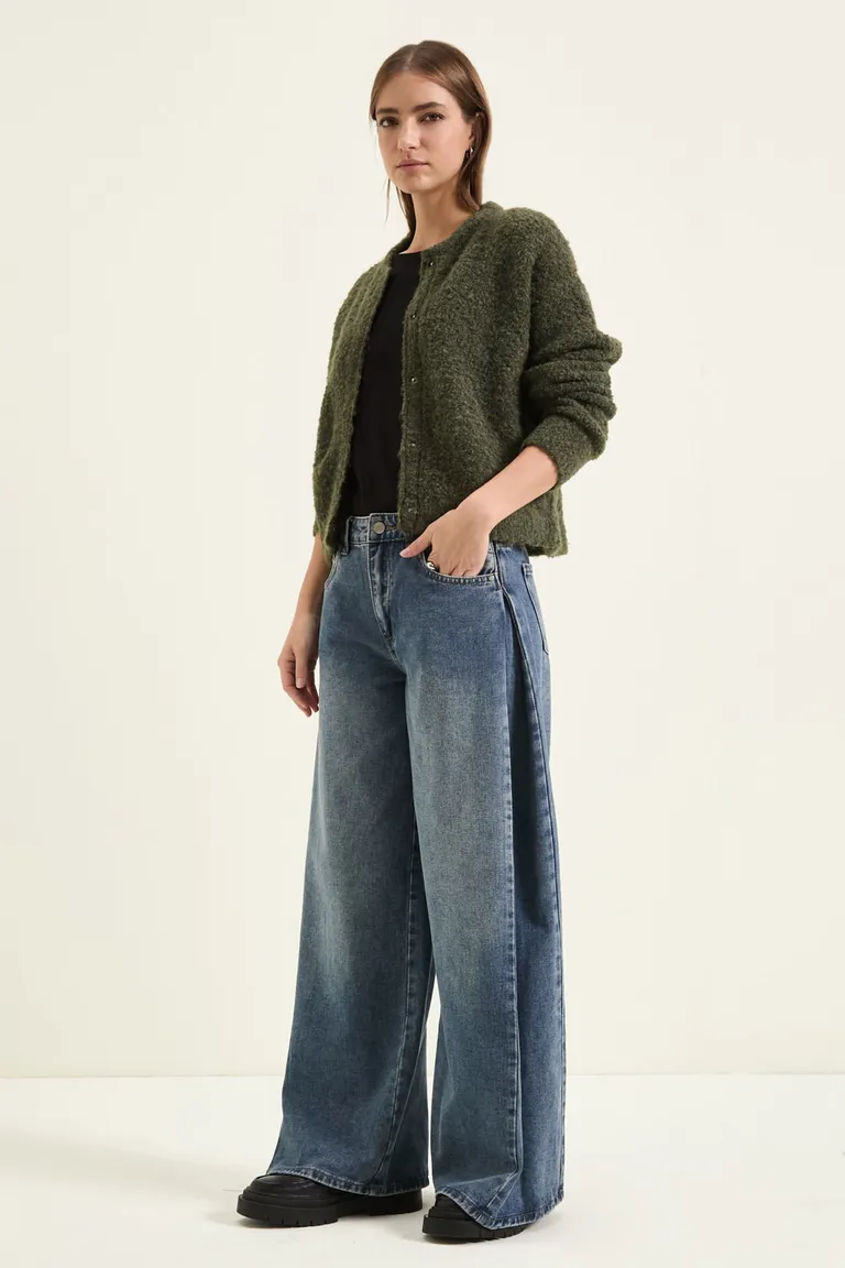 Pantalón de corte wide leg con diseño de pierna amplia y tiro medio. Presenta un detalle distintivo de pinzas laterales que aportan estructura y movimiento. Un ítem versátil de estilo casual, ideal para combinar en looks diarios. Su diseño atemporal permite una amplia variedad de combinaciones, ofreciendo un ajuste cómodo y moderno para diversas ocasiones.
