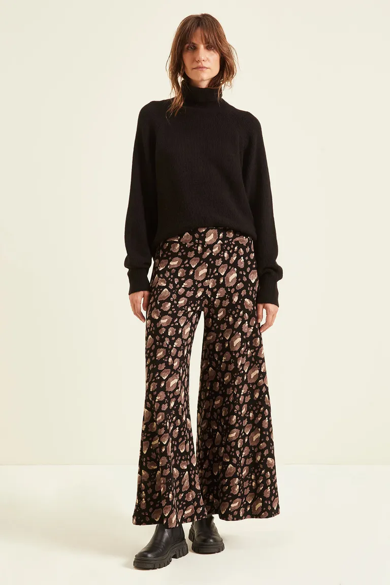 Pantalón wide leg tiro alto con diseño estampado y recortes laterales de Cuesta Blanca