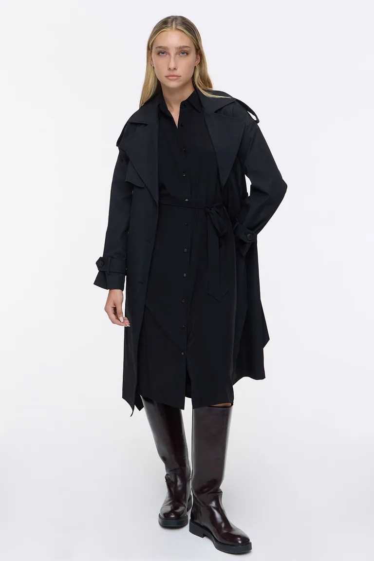 Vestido camisero de largo midi con cuello clásico y cierre frontal por botones. Incluye un cinturón para entallar la silueta, ofreciendo una opción versátil y funcional para diversas ocasiones. Su diseño presenta un estilo sobrio y definido, ideal para combinar con diferentes tipos de calzado y accesorios.
