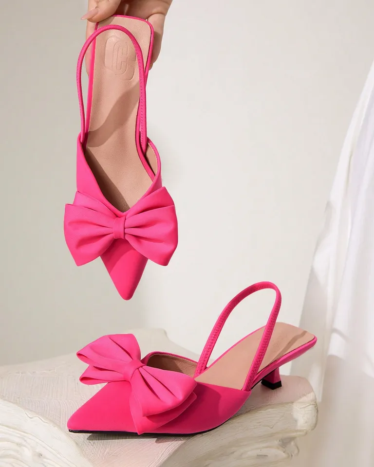 Elegantes tacones de mujer con punta fina y sutil tacón de gatito, decorados con un sofisticado lazo negro. Perfectos para complementar tus atuendos en cualquier ocasión, desde tu salida diaria hasta eventos especiales. Versátiles y cómodos, estos zapatos te brindarán estilo y confort durante todo el día. Ideales para lucir en primavera, verano, otoño e invierno, combinando a la perfección con tus vestidos de satén, faldas y pantalones.